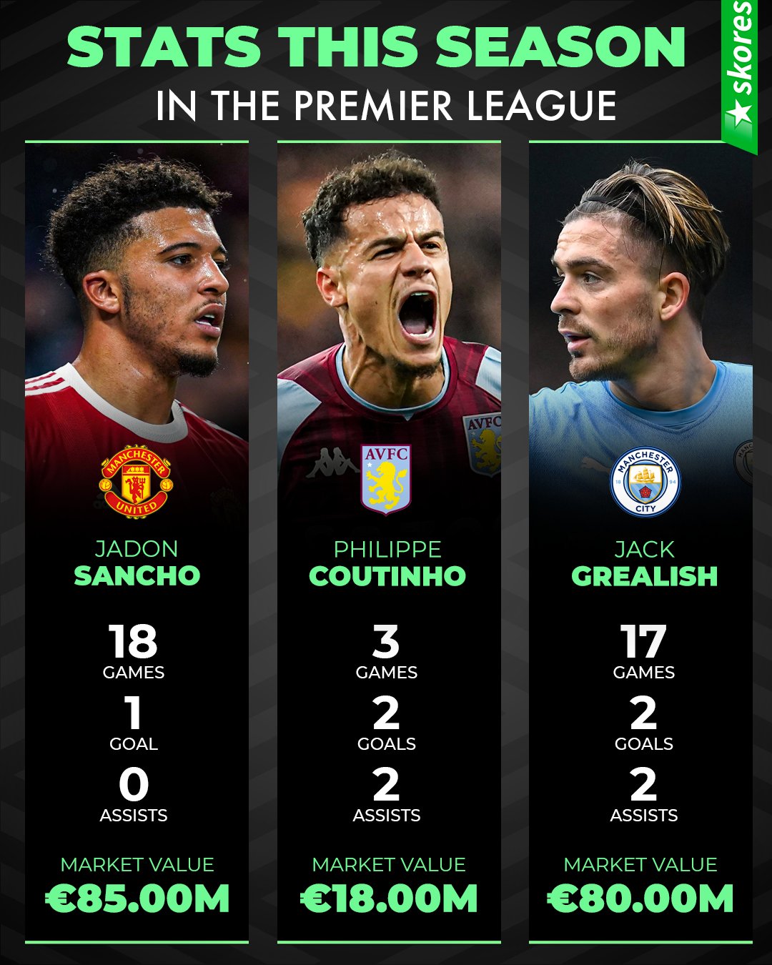 Skores On Twitter This Season Premier League Stats Comparison Between These 3 Players What Do You Think About Sancho And Grealish Season Https T Co My08tutzep Twitter